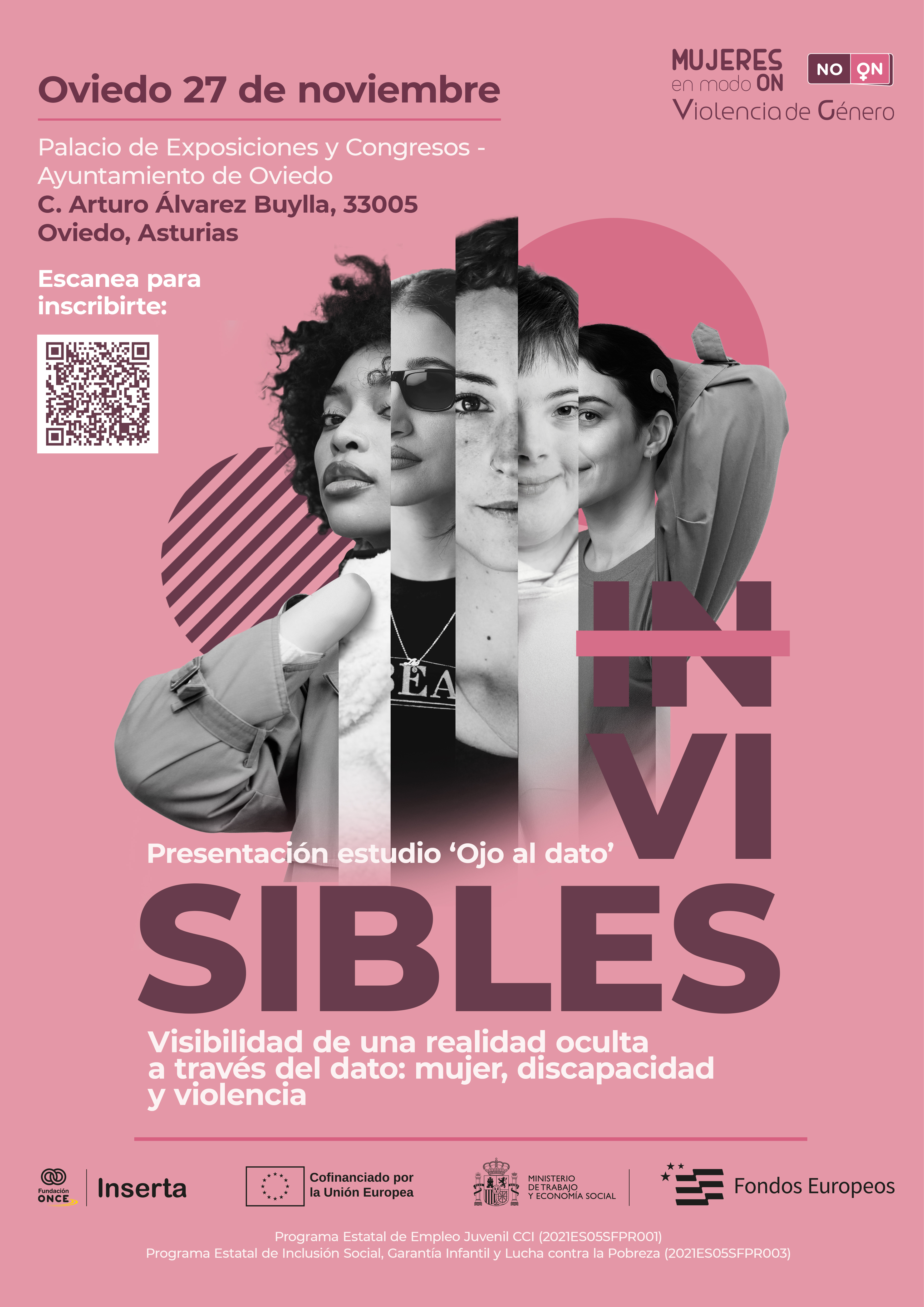 El programa de eventos (IN)VISIBLES visibiliza a las mujeres con discapacidad víctimas de violencia de género. Inserta Empleo presentará el estudio ‘Ojo al dato’, primero que con una muestra tan amplia, pone de manifiesto la realidad en España de las mujeres con discapacidad víctimas de violencia de género, reuniendo testimonios de víctimas, análisis de profesionales expertos y la participación activa de los sectores empresarial y educativo.