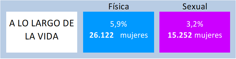 La violencia física o sexual por parte de la pareja, que es la más comúnmente identificada como violencia de género, tiene menor prevalencia: la han sufrido 65.299 mujeres, el 13,7% del total de mayores de 15 años.
