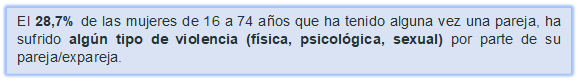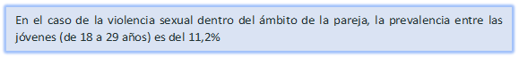 A partir de estas edades, la prevalencia disminuye, llegando a ser sólo del 3,9% entre las mujeres de 64 a 75 años; esto no quiere decir que la violencia sufrida haya sido menor en el pasado: hay que tener en cuenta el efecto memoria en la respuesta de las mujeres más mayores, así como la influencia de la educación recibida, que puede haber producido mayor tolerancia a este tipo de violencia.