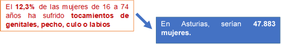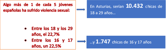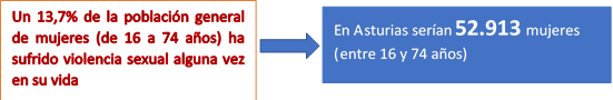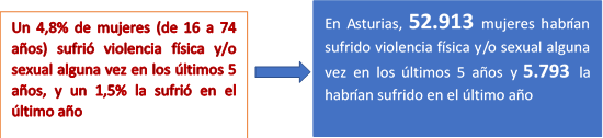 Los resultados de la EEVG son estatales: no se pueden desagregar los datos a nivel de Comunidades Autónomas. Los datos que se presentan a continuación son los porcentajes de prevalencia para España de cada uno de los tipos de violencia de los que trata la EEVG, y su extrapolación a la población de mujeres asturianas, siempre que sea pertinente. Según los datos de la Estadística del Padrón Continuo del año 2022, en Asturias había 386.228 mujeres entre 16 y 74 años.